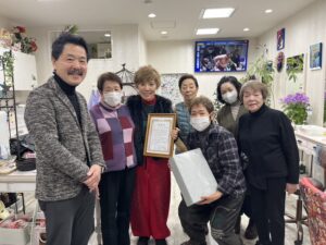 遅くなりましたが先日1月21日にいつも多大なるご支援をしてくださっているエレガンス美容室様へ赴き、日ごろの感謝を込めて感謝状と御礼の品をお渡しさせていただきました。